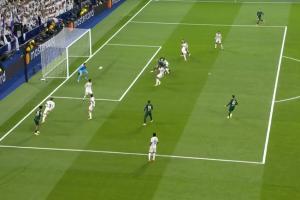 VAR介入,主裁观看回放后判罚点球,并对吕迪格出示黄牌!哈兰德点射打进!此时比分变为曼城2-1皇马!
