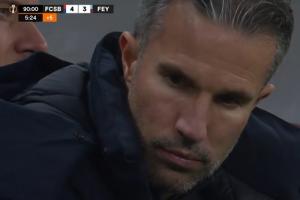 场边费耶诺德主帅范佩西看到自己球队被绝杀,死死盯着场边的平板电脑,一动不动陷入深思。