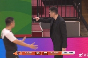 杨鸣冲记录台投诉现场原声:“吹这么偏?全是轻微触碰,这球在篮板后面你们救他一命?”