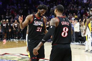 据此前报道,保罗·乔治(伤病管理)本场比赛不会出战,赛前76人官方宣布恩比德(生病、伤病管理)同样也将缺席。