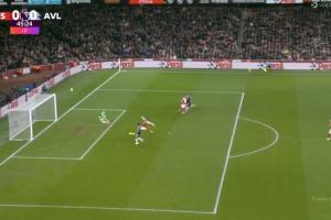在上半场补时阶段,维拉中场直塞发动反击,桑乔前插后横传,就在沃特金斯即将踢空门时,萨利巴倒地伸腿将球铲出底线。