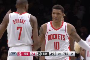 GIF-伊森防守端盖帽!!小贾进攻端三分球!!打停篮网!!