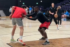 媒体人:杨瀚森折返跑是能够跟得上了 但强度还是比较差的