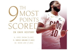 截至发稿,加兰拿到14分,总分超越7665,超越乐福,升至骑士队史第9位。