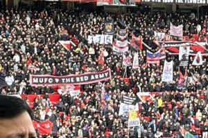 据记者Samuel Luckhurst报道,比赛尚未开始,两队球迷已经在看台展开了“对抗”,曼联球迷高举“115”标语,嘲讽曼城遭到115项指控,而曼城球迷高唱关于阿莫林的歌曲,以及他们为阿圭罗和菲尔·琼斯创作的歌曲。
