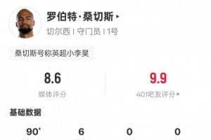 24直播01月18日讯 切尔西2-0胜布伦特福德。首发门将罗伯特·桑切斯表现出色,贡献全场最高的6次扑救,评分8.6分,力保球门不失,是球队获胜的关键。
