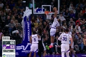 打停快船!东契奇单防哈登生生抢断 反击助飞八村塁空接暴扣