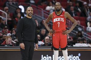 昨天对阵76人,火箭加时惜败,杜兰特出战44分02秒,36分7篮板3助攻1盖帽。